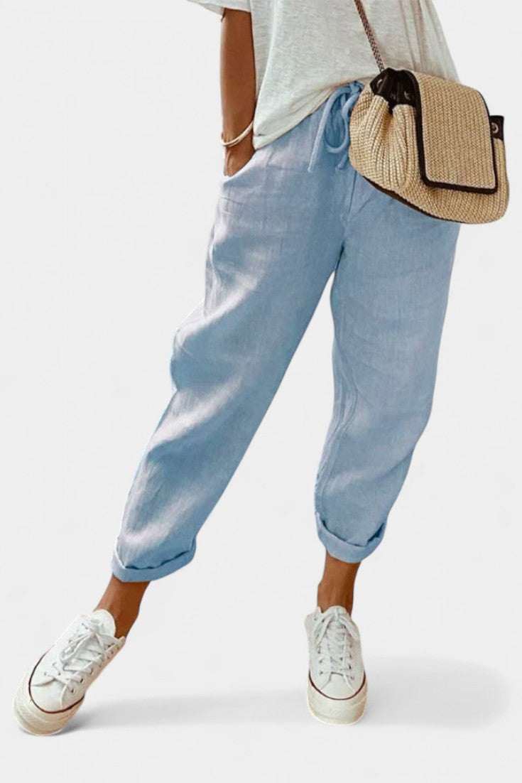 Alina Pantalones Rectos Cintura Alta Verano Exclusivo