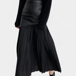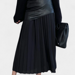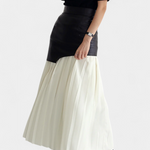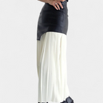 Con su silueta plisada y el corte asimétrico, esta maxi falda es perfecta para las almas contemporáneas que buscan un toque urbano en su guardarropa. Cada pliegue cuenta una historia de dinamismo y estilo, ideal para ocasiones especiales o un día casual.