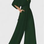 Descubre el mono Isaura Mono Largo Minimalismo Refinado Edición Limitada, una pieza que irradia equilibrio y elegancia. Su diseño combina fluidez con estructura, destacando un escote en V que alarga la figura y mangas tipo capa que aportan un aire etéreo.