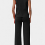 - Pantalón de pierna ancha que estiliza con movimiento elegante.