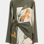 Joaquina Vestido Floral Crepé Exclusivo Torcido Detalle