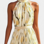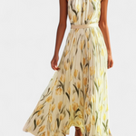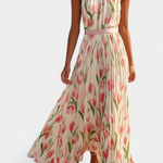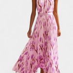 Refinado y femenino, el vestido Juliene combina un estampado floral vibrante con un diseño plisado que aporta textura y movimiento. Su corte sin mangas y escote redondo crean una silueta ligera y favorecedora, perfecta para días soleados y ocasiones elegantes.