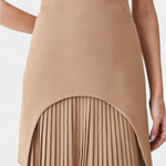 El Karen Vestido Mini Plisado Exclusivo Con Cuello Alto es una pieza única que transforma la silueta clásica. Su diseño innovador incluye un panelado con aberturas y una capa inferior plisada, que aporta movimiento y textura.