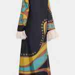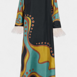 Bohemio, audaz y lleno de carácter, el vestido Kiara irradia un encanto retro que no pasa desapercibido. Con un estampado vibrante en tonos turquesa, amarillo y marrón, y un ajuste relajado con escote barco, aporta frescura y estilo sin esfuerzo.