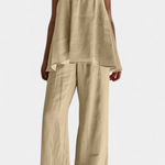 Una expresión de estilo relajado y natural. El conjunto Lía combina un top amplio de tirantes con pantalones de pierna ancha, creando una silueta cómoda y moderna. Su diseño aireado y minimalista es ideal para días tranquilos, escapadas veraniegas o simplemente disfrutar del presente con estilo.