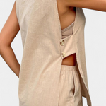 Loren Conjunto de Lino Sin Mangas Estilo Relajado Exclusivo