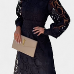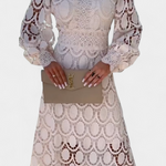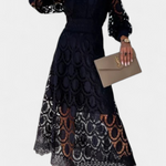 Lucinda Vestido Midi Encaje Electa Mangas Farol Cuello Alto