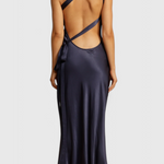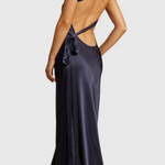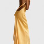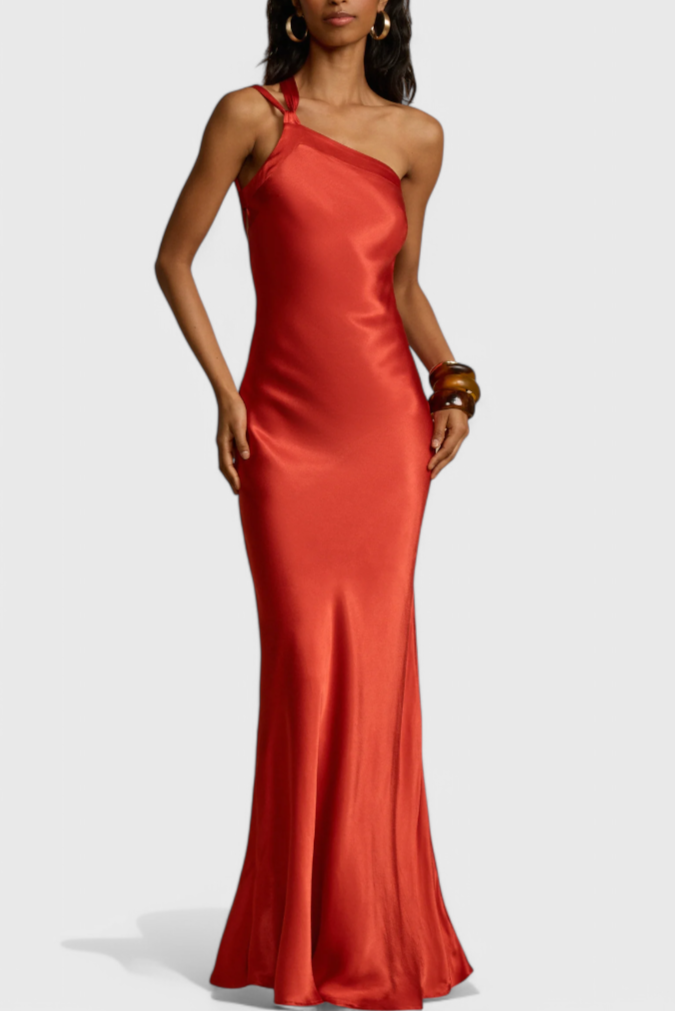 - Espalda descubierta con tirante diagonal que añade un toque audaz.