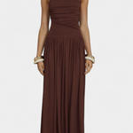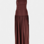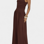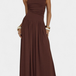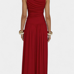 Minimalista pero impactante, el vestido Maddy combina un diseño sin mangas con un delicado drapeado lateral que realza la silueta con sutileza. Su corte largo y fluido aporta elegancia en cada movimiento, mientras que el escote recto añade un aire contemporáneo y sofisticado.