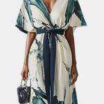 Maliyah Vestido Estampado Cintura Anudada Murciélago Único