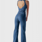 Descubre el mono de mezclilla que roba corazones—literalmente. Maisie combina el atractivo audaz de la mezclilla con un toque femenino, gracias a su llamativa espalda abierta en forma de corazón. Las costuras en V favorecedoras ajustan la cintura, mientras que el ligero acampanado en las piernas añade un toque elegante y atemporal.