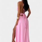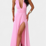 El Vestido Latisha Halter Con Gran Abertura de la Colección Lujo es la elección perfecta para quienes buscan elegancia y audacia. Su diseño fluido y atemporal garantiza que brilles en cualquier evento especial.