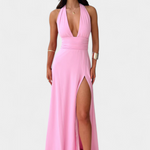 Latisha Vestido Halter Con Gran Abertura Colección Lujo