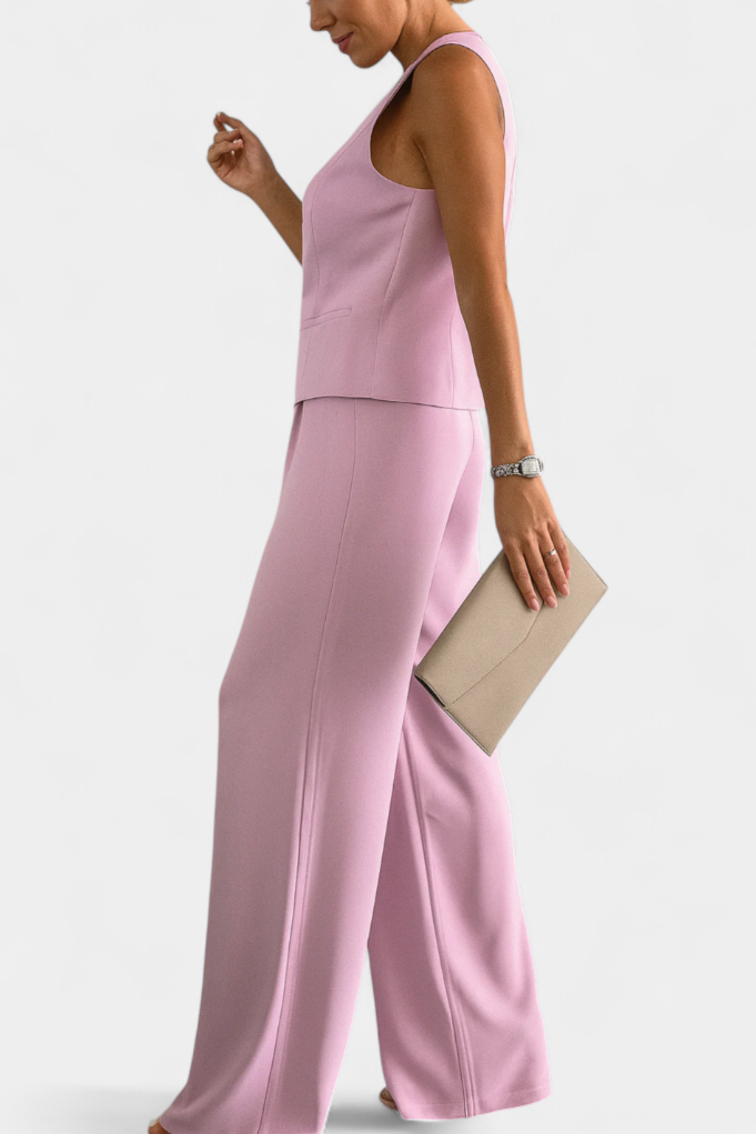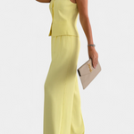 Descubre el conjunto Paloma Seda, una opción sencilla, refinada y cómoda que combina una blusa sin mangas con botones y un pantalón fluido de corte favorecedor. Este conjunto está diseñado para ofrecer estilo sin esfuerzo, ideal para un almuerzo relajado o una cena al aire libre.