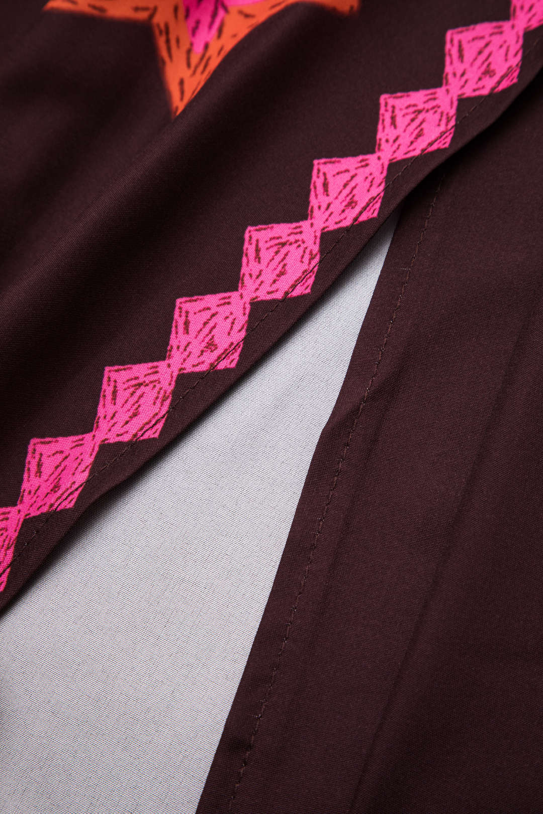 - Bordados en tonos vivos con palmeras, estrellas y aves tropicales.