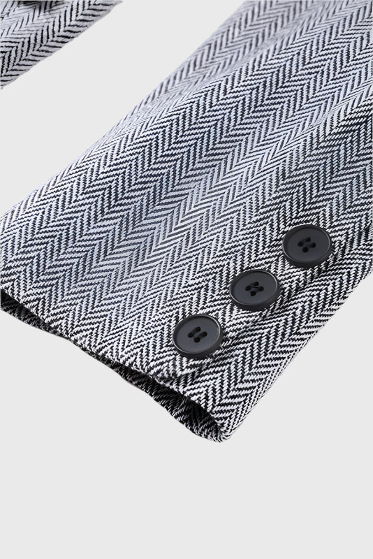 El tejido premium con patrón sutil aporta textura y elegancia, mientras que la silueta definida proyecta confianza y estilo.