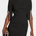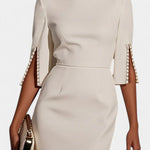 Reece Vestido Midi Con Perlas Cuello Redondo Exclusivo
