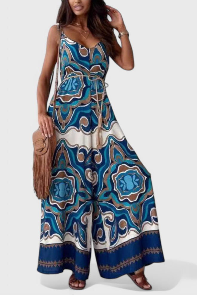 Ariane Mono De Pierna Ancha Escote En V Y Lazo Exclusivo
