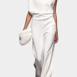 Su silueta pulida aporta un equilibrio perfecto entre estructura y movimiento. El diseño de un solo hombro añade un aire vanguardista y refinado, mientras que la pernera fluida estiliza y se adapta al movimiento.