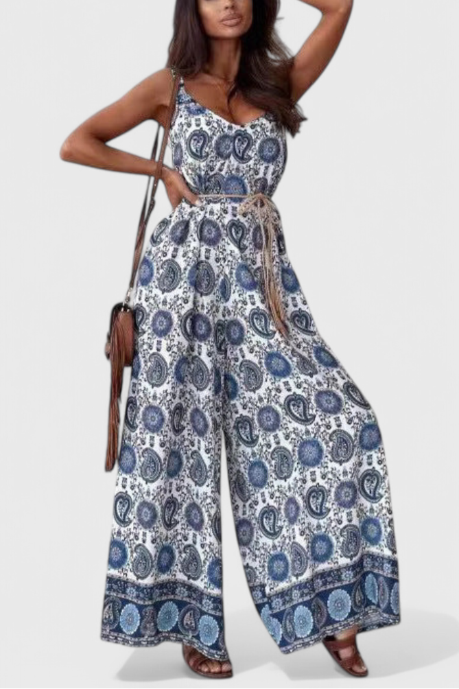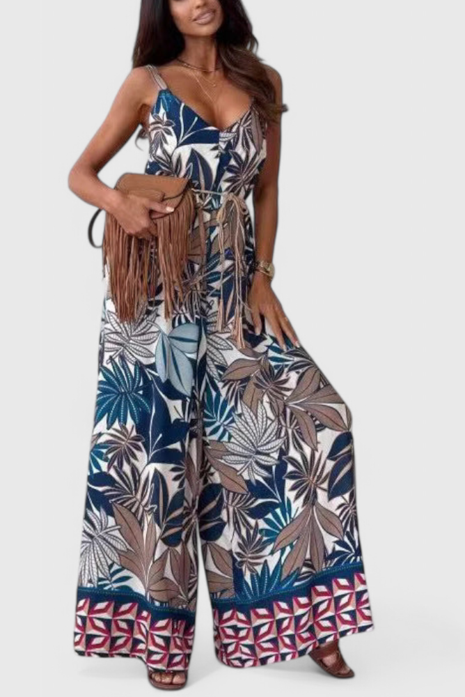 Ideal para escapadas soleadas o planes nocturnos, este mono combina un estampado audaz con una sofisticación sin esfuerzo. La silueta de pierna ancha ofrece movimiento y elegancia ligera, perfecta para cualquier ocasión.