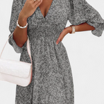 Fabricado con un tejido premium ligero, este vestido garantiza comodidad y frescura en climas cálidos. Las mangas abullonadas aportan volumen y un toque romántico, mientras que el dobladillo juguetón añade movimiento y un aire coqueto.