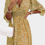 El vestido Benicia es fresco, coqueto y veraniego, ideal para capturar la esencia del verano. Su estampado floral y mangas abullonadas lo convierten en una prenda única y encantadora.