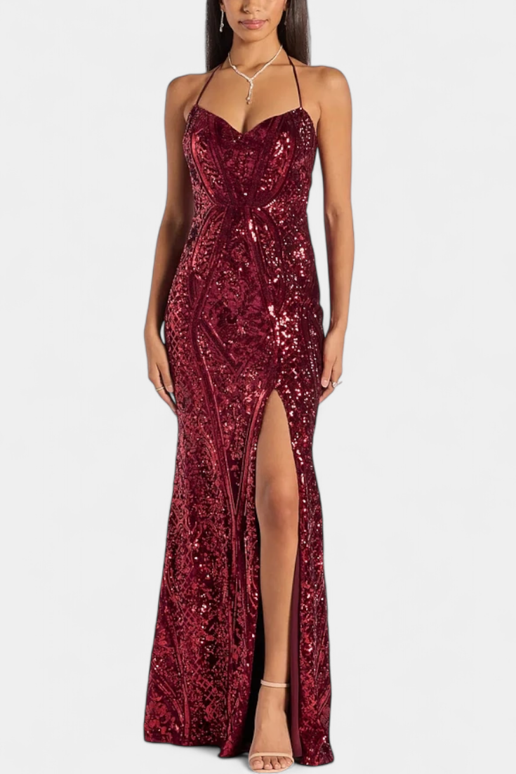 Marleni Vestido Halter de Lentejuelas Colección Privada