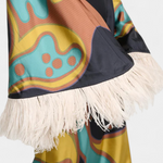 Los flecos de plumas en puños y dobladillo añaden dramatismo juguetón, creando una pieza ideal para destacar en cualquier ocasión. Perfecto para eventos especiales, vacaciones o para elevar tus looks diarios con un toque de libertad bohemia.