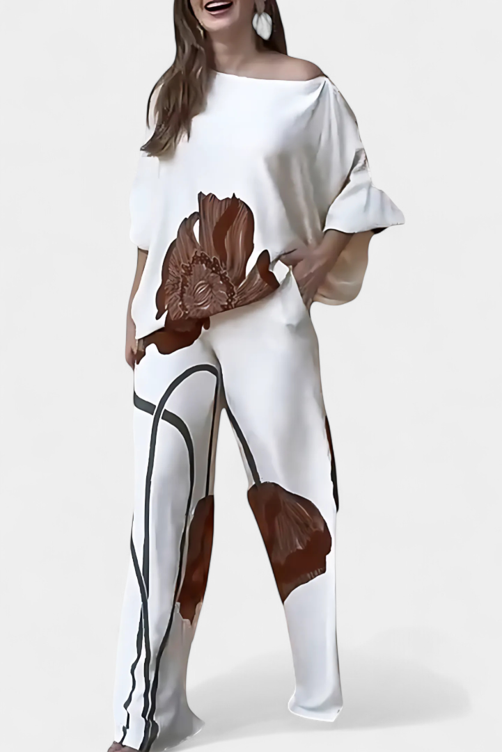 Descubre el conjunto floral Jessie, una fusión perfecta de frescura y estilo desenfadado. Este conjunto exclusivo de Sybella combina un top asimétrico de manga murciélago con un vibrante estampado floral, ideal para quienes buscan un look bohemio y lleno de energía.