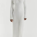 Descubre el vestido Darla, una pieza de edición limitada que combina sofisticación y comodidad. Su textura de punto acanalado y el cinturón en la cintura crean una silueta estilizada, perfecta para cualquier ocasión.