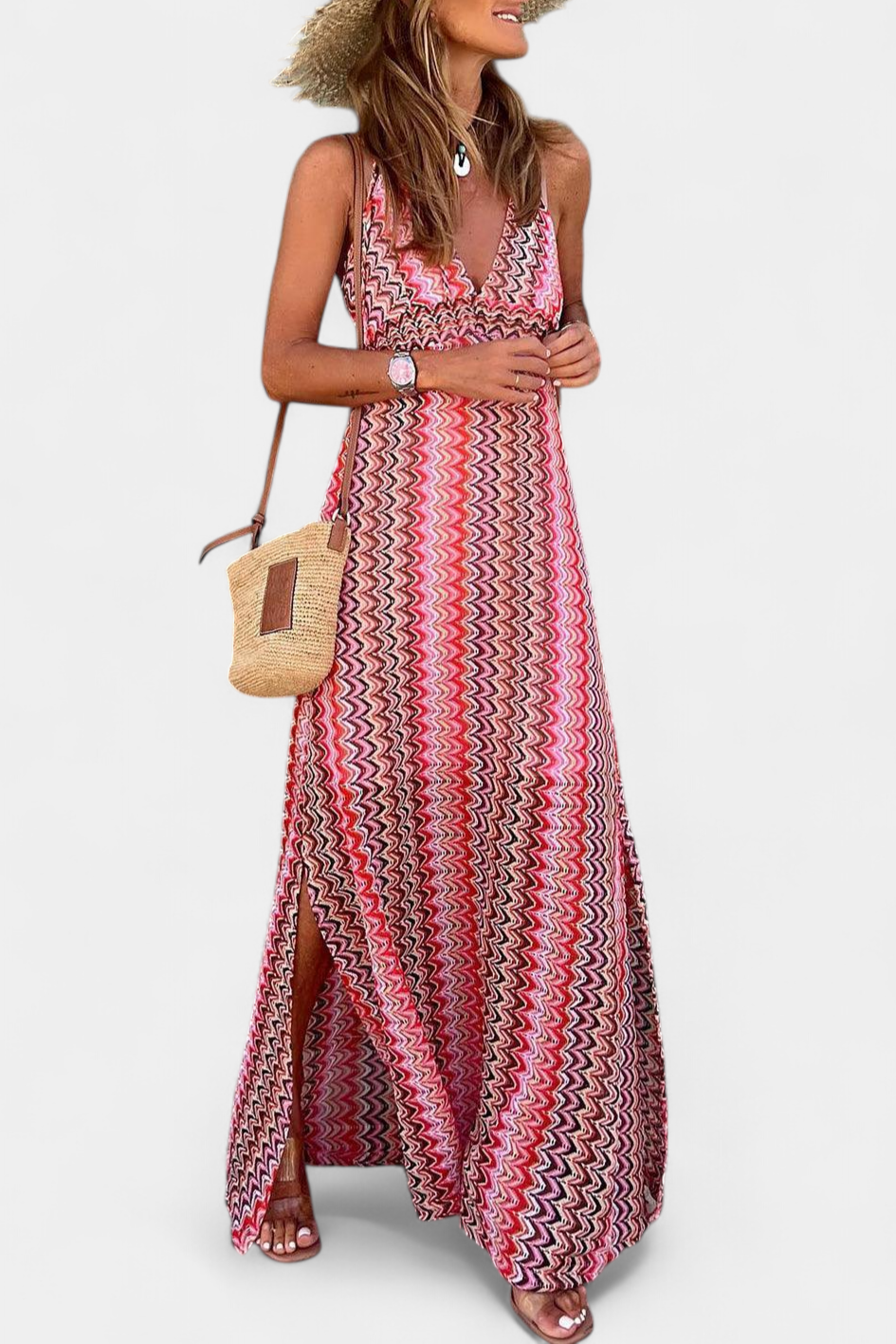Gretchen Vestido Maxi Rayas Multicolor Escote V Exclusivo