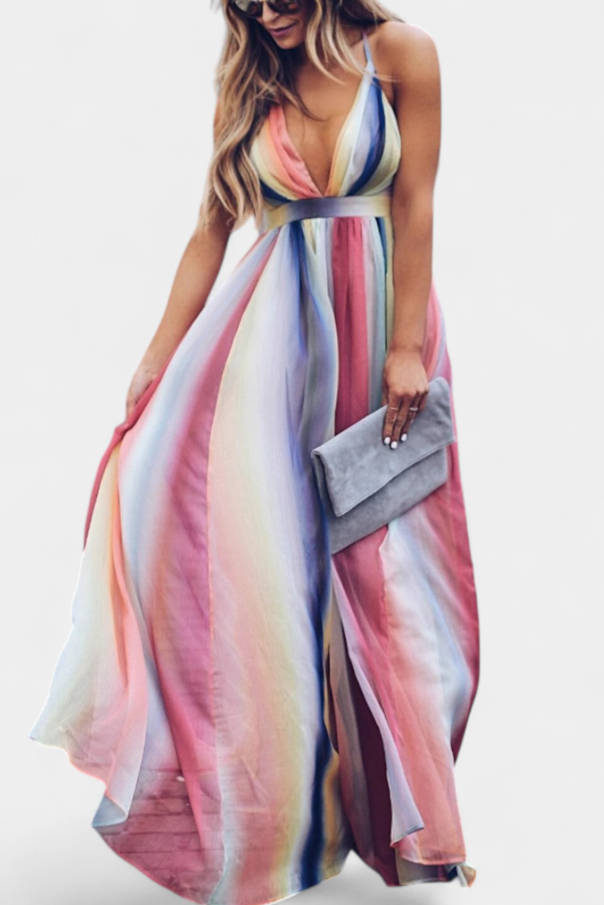 Gretchen Vestido Maxi Rayas Multicolor Escote V Exclusivo