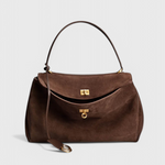 Fabricado en suave cuero vegano con efecto ante, este bolso destaca por su textura lujosa. El cierre dorado no solo asegura tus pertenencias, sino que también añade un toque de brillo refinado.