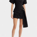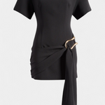 Coraline Vestido Mini Con Cintura Drapeada Hebilla Dorada