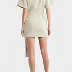 El vestido Coraline es una pieza que combina minimalismo y carácter, ofreciendo un toque escultural. Con mangas estructuradas y un cinturón drapeado, este mini vestido destaca por su hebilla dorada, que añade un aire sofisticado.