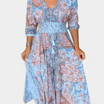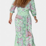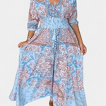 Refrescante y versátil, el vestido Dunya está diseñado para acompañarte con estilo durante los días cálidos. Su escote en V, mangas ¾ y detalles de botones crean una silueta favorecedora, mientras el cordón ajustable realza tu figura con naturalidad. Ideal para vacaciones, salidas informales o cualquier ocasión soleada.