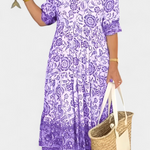 Relajado, fresco y con encanto bohemio—Elcira es un vestido pensado para disfrutar del verano con ligereza y color. Su estampado floral de inspiración mediterránea, escote en V y silueta amplia lo convierten en una opción versátil para cada día soleado.
