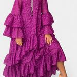 Con capas ligeras, elegantes plisados y volantes que realzan la feminidad, este vestido transforma momentos ordinarios en memorables. Las mangas acampanadas equilibran comodidad y estilo, creando un look encantador y lleno de personalidad.