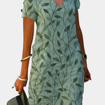 Ligero y fresco, el vestido Elowen combina un encanto relajado con una elegancia natural. Con un escote en V poco profundo, mangas cortas y un estampado de hojas botánicas, esta silueta de cambio casual es ideal para días soleados, vacaciones o un estilo diario sin esfuerzo.