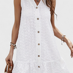 Descubre la ligereza veraniega con el vestido Halina, una prenda que irradia encanto natural. Su delicado tejido de ojal en algodón blanco ofrece frescura, mientras que la silueta en A favorece con comodidad y estilo.