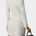 Refinado y seguro, el vestido Heidi reinventa la sastrería clásica con un enfoque femenino y sofisticado. Su silueta inspirada en el blazer, combinada con un cierre de doble botonadura y un tejido premium, proyecta una presencia impecable que se adapta tanto a eventos formales como a noches con estilo.