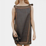 Despierta el encanto sin esfuerzo de los años 60 con el vestido mini Lorena Montmartre Foulard, una oda nostálgica a la elegancia vintage. Confeccionado en una mezcla suave de seda simulada y viscosa, y adornado con un estampado tipo foulard inspirado en los clásicos pañuelos de seda, esta silueta favorita combina juego y sofisticación con naturalidad.