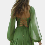 Fresco, encantador y con un toque romántico, el vestido Skylar es ideal para días soleados y noches especiales. Su diseño envolvente, mangas vaporosas y volantes en movimiento crean una silueta etérea que realza sin esfuerzo tu feminidad.