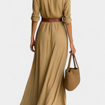 Souline Vestido Maxi Solapa Manga Larga Sastrería Exclusiva