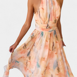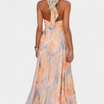 El vestido Alaia Estampado Aquarelle de la Colección Exclusiva es una pieza artística y etérea que celebra la feminidad. Su silueta fluida y el elegante cuello halter estilizan delicadamente, mientras que la espalda descubierta añade un toque de frescura y sensualidad.