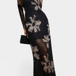 El Aldona Vestido De Tobillo Malla Estampado Floral Exclusiva es una propuesta refinada que combina feminidad y modernidad. Con un delicado estampado floral, su silueta ceñida se realza con mangas largas y un cuello redondo de líneas suaves.