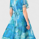Almira Vestido De Gasa Azul Estampado Acuarela Exclusivo
