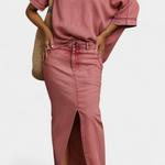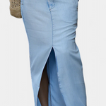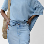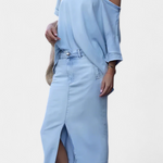 Con actitud y sofisticación, el conjunto Apolonia redefine el denim con un aire moderno y femenino. Su top de un solo hombro realza la silueta con un toque audaz, mientras que la falda larga con abertura frontal alarga la figura y aporta movimiento refinado. Confeccionado en un denim suave pero estructurado, equilibra estilo y comodidad en cada detalle.