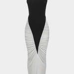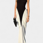 El Ariana Vestido Midi Bicolor Con Plisado Edición Limitada es una pieza que redefine la elegancia moderna. Su diseño en blanco y negro crea un contraste impactante, mientras que los pliegues añaden un toque de sofisticación y movimiento.