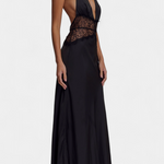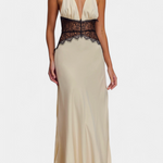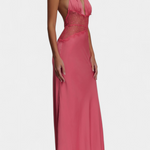 Ashanty Vestido Largo Halter Con Encaje Transparente Elite